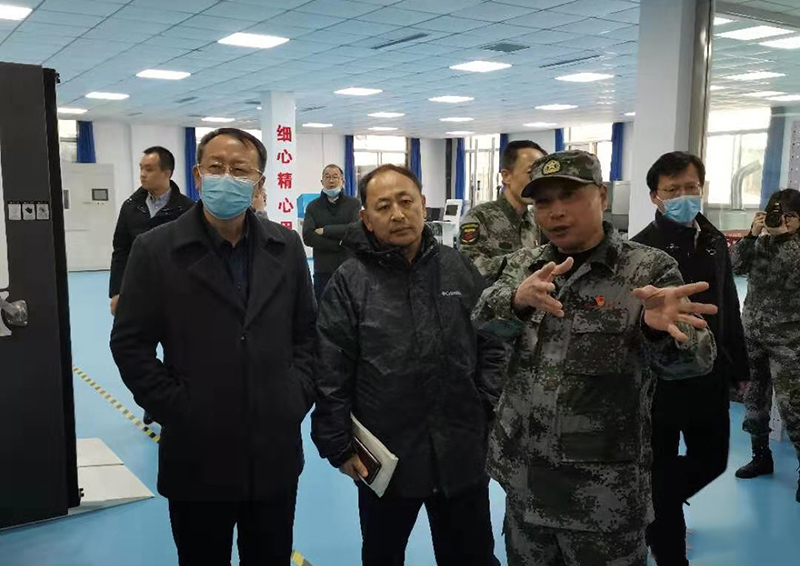 調研組在我公司產品展廳,對企業生產的三防報警、滅火、滅火抑爆及車載防護裝置等系列產品進行細致了解。