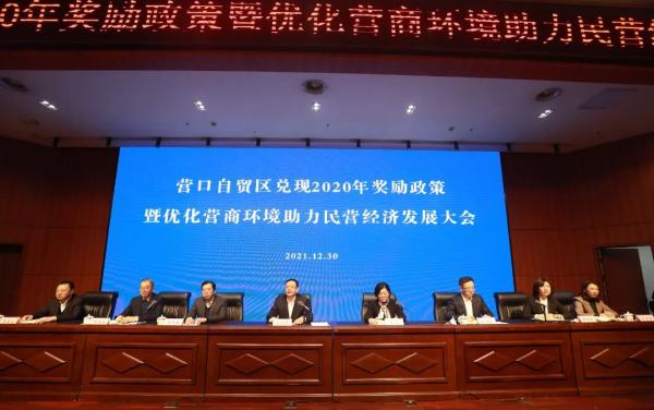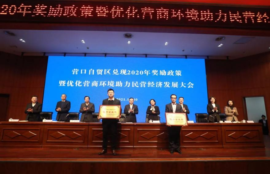 2021年12月30日,我公司參加了由營(yíng)口自貿(mào)區(qū)黨工委、管委會(huì)召開的“兌現(xiàn)2020年獎(jiǎng)勵(lì)政策暨優(yōu)化營(yíng)商環(huán)境助力民營(yíng)經(jīng)濟(jì)發(fā)展大會(huì)”,參會(huì)的人員有自貿(mào)區(qū)黨工委、管委會(huì)領(lǐng)導(dǎo)班子成員、管委會(huì)各部門負(fù)責(zé)人、國企公司、各派駐機(jī)構(gòu)代表以及獲獎(jiǎng)企業(yè)代表,共計(jì)100余人。