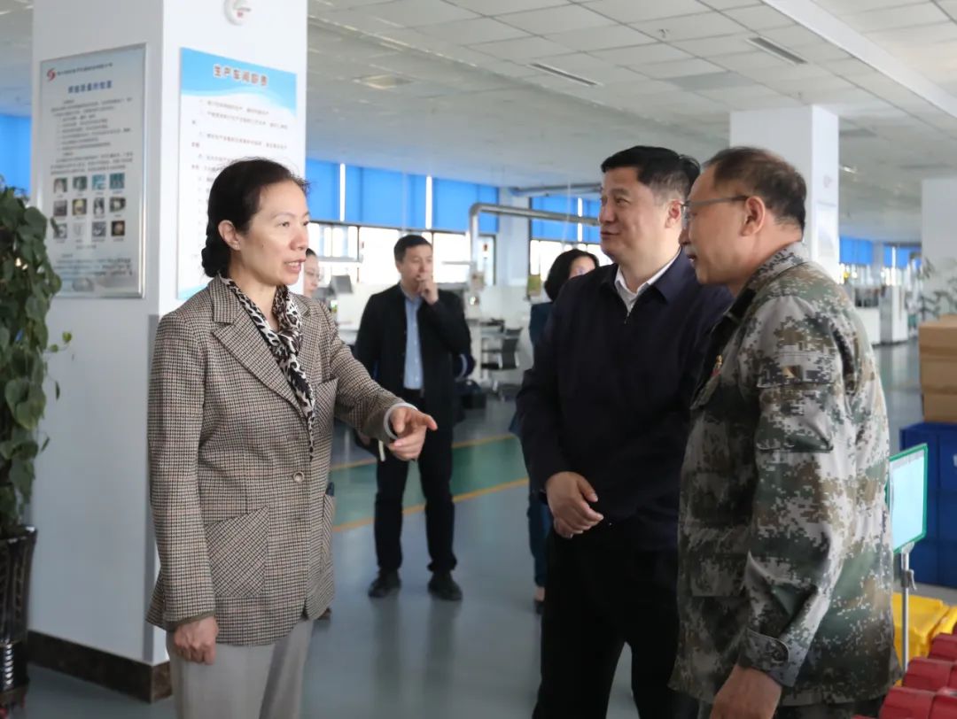 省領導詳細查看了公司智能化生產車間、試驗檢測中心、省創新工作室、公司展廳及黨建活動中心、職工食堂等部門,現場了解生產設備、工藝和生產流程、詢問企業經營效益、產品銷售、品牌效應等情況,詳細了解公司主要研發項目和產品在民用市場的應用推廣,以及有關服務平臺的建設和資源共享情況。并特別關注了公司人才隊伍建設、補貼政策落實等情況。