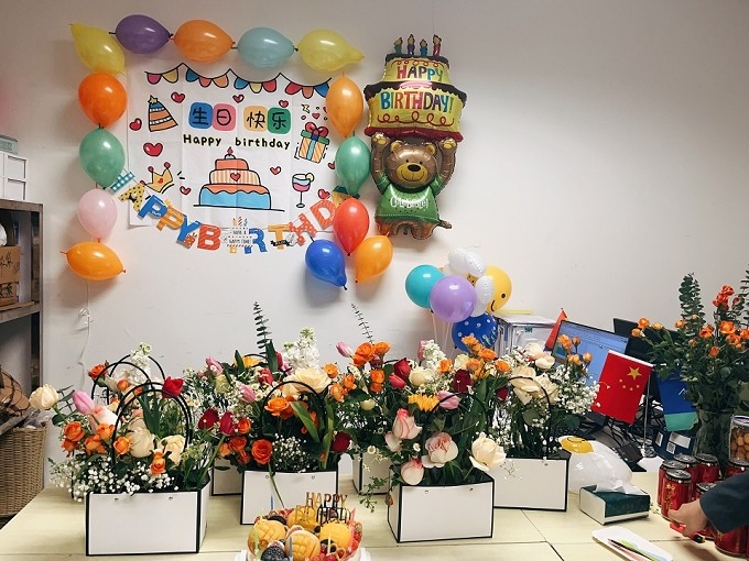 蛋糕上熠熠生輝的每一點燭光象征著您在過去工作的努力與成就;飄揚的彩球承載著對您未來的美好愿景。讓我們在這充滿喜悅的氛圍中,一同享受屬于您的歡樂時刻。